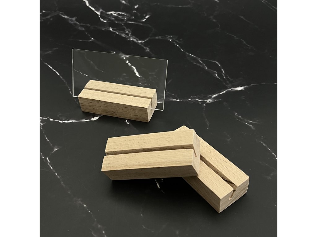 Tento komplet obsahuje dřevěný stojánek a zaoblenou plastovou destičku 100 × 150 mm, které jsou navržené tak, aby k sobě perfektně pasovaly. Stojánek je vyráběný na míru truhlářem a má přesně vyfrézovanou drážku pro destičky o tloušťce 3 mm, takže vše drží stabilně a rovně bez viklání.